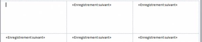 La boîte de dialogue Sélectionner la source de données se ferme et l'inscription Enregistrement suivant apparaît dans toutes les étiquettes sauf la première.