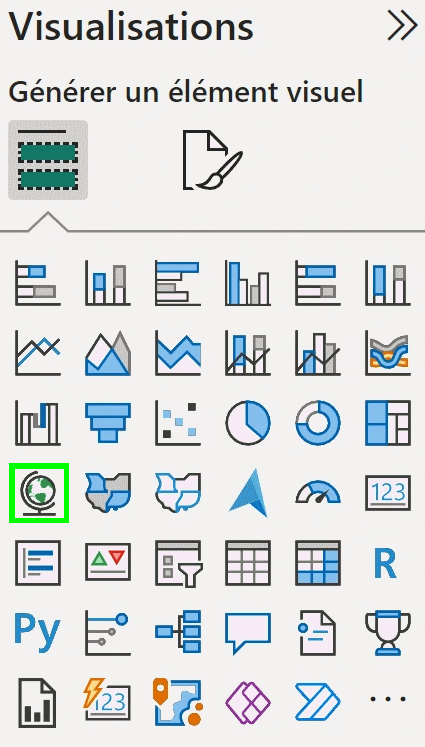 Dans le panneau de visualisation, sélectionnez une carte:Utilise Bing Maps pour afficher des points sur une carte.