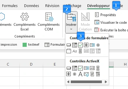 Sous Contrôles de formulaire, sélectionnez Case à cocher.