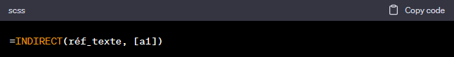réf_texte : C'est l'argument obligatoire de la fonction INDIRECT. Il s'agit du texte qui représente la référence de la cellule que vous voulez renvoyer. Ce texte peut être une adresse de cellule ou le nom d'une plage de cellules.
