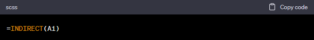 Supposons que vous ayez le texte "A1" dans la cellule A1 et "B2" dans la cellule A2. La formule suivante dans une autre cellule renverra le contenu de la cellule A1 :
