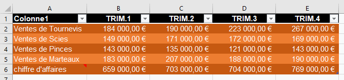 Après avoir téléchargé le fichier de travail ci-contre, vous le dupliquez 3 fois au minimum et appliquez les mises en formes automatiques pour obtenir des résultats variés.