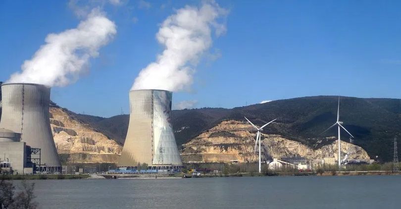 Centrale nucléaire : usine qui produit de l'électricité à partir de l'énergie des atomes.