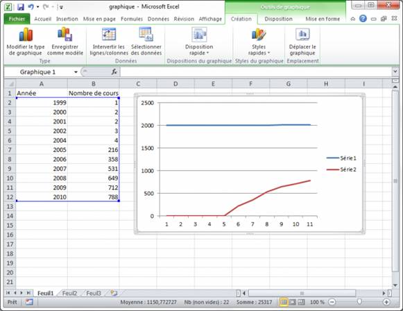Avant de commencer à définir un graphique, il vous faut au moins une plage de données propre. Le principe de création d'un graphique est simple :