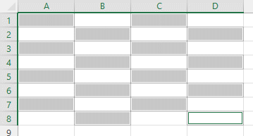 Dans un classeur Excel, vous reproduisez la situation ci-dessous, à savoir la sélection des cellules grisées A1, C1, A3…À noter que les cellules blanches ne sont pas sélectionnées