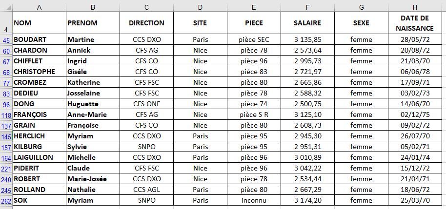 Créez une zone de critères qui filtrera les femmes nées après le 01/01/1970 ayant un salaire supérieur à 2500€