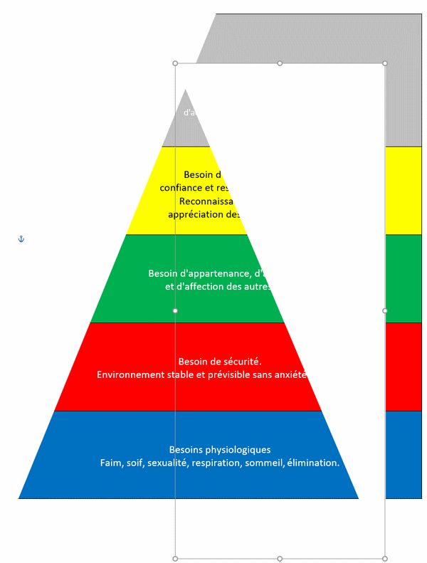 Ici la solution retenue, c'est la création d'un tableau. Remarquez la forme triangulaire blanche qui vient recouvrir la partie droite du tableau et qui laisse penser que c'est bien une pyramide.