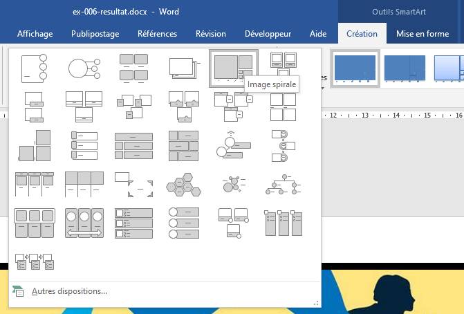 Vous insérez le modèle via smart-art et insérer les photos dans les zones prévues.