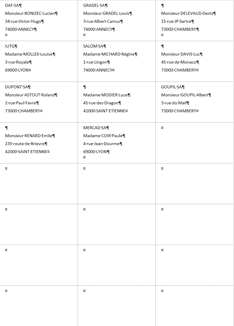 Créez la base de données dans Word ou Excel, dans l’onglet publipostage, faites-en une planche d’étiquette. Bien regarder la page support pour savoir comment faire pour générer la planche au final.