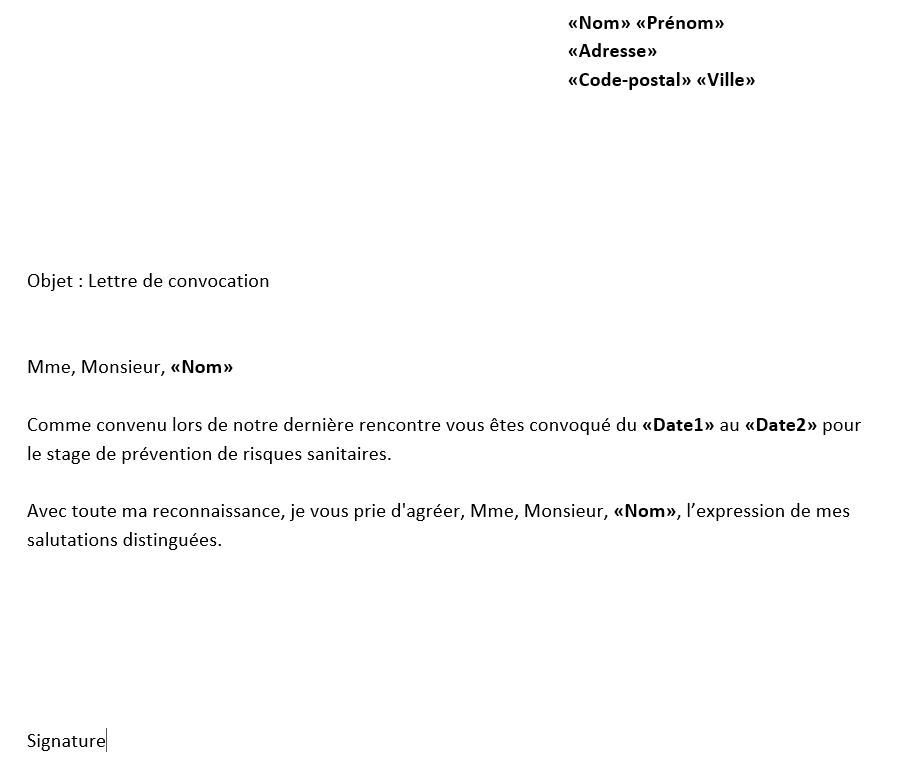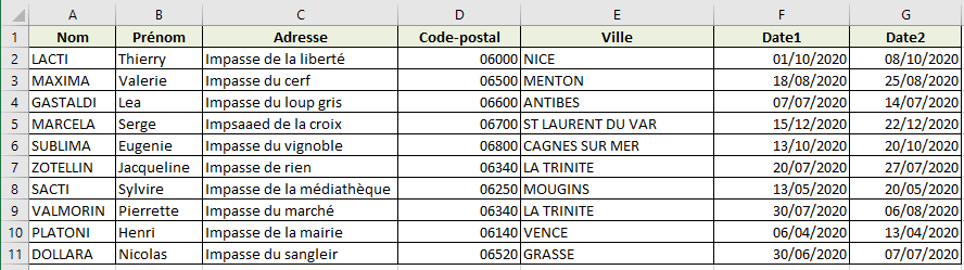 Vous pouvez télécharger le fichier Excel qui regroupe les noms et adresses, et le fichier Word pour le modèle de courrier.