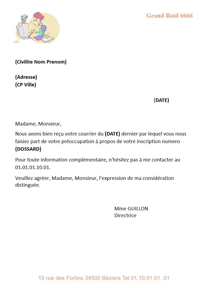 Nous avons bien reçu votre courrier du (DATE) dernier par lequel vous nous faisiez part de votre préoccupation à propos de votre inscription numéro (DOSSARD).