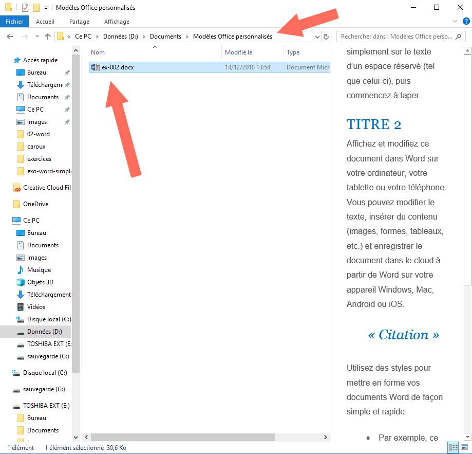Vous l'enregistrez dans "Modèle Office personnalisés" de votre dossier "Documents".