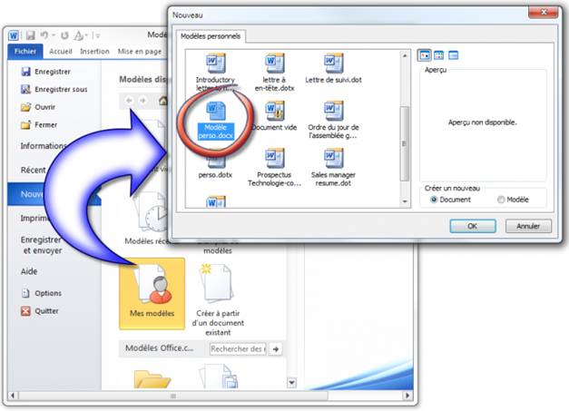 • Cliquez sur Nouveau, puis sur Mes modèles ;