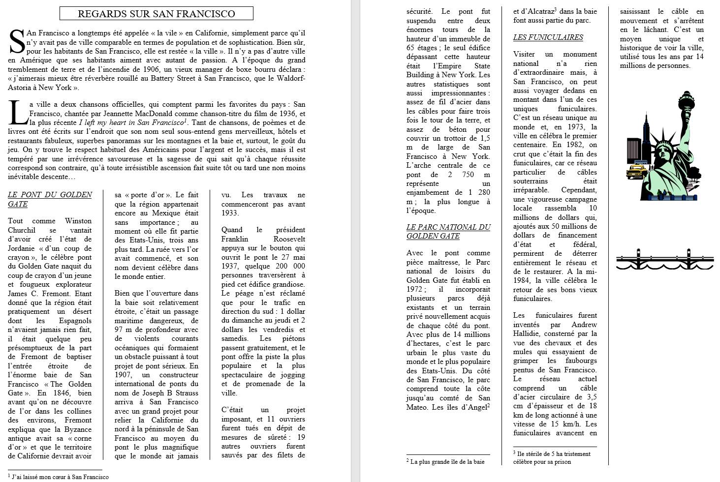 - Mise en colonne après le titre "Le pont du Golden Gate"