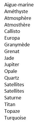 Après avoir copier-coller le texte ci-dessous, vous utilisez la fonction trié pour remettre l'ensemble par ordre alphabétique![]()