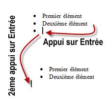 Lorsque vous appuierez sur la touche Entrée pour passer au paragraphe suivant, une puce lui est automatiquement ajoutée. Pour terminer la liste, appuyez une deuxième fois sur la touche Entrée.