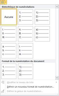 Pour créer une nouvelle liste, cliquez sur la flèche à droite de l'icône Numérotation et choisissez un des formats proposés.