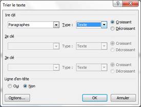Dans la fenêtre qui s’ouvre, triez le paragraphe de type texte par ordre croissant.