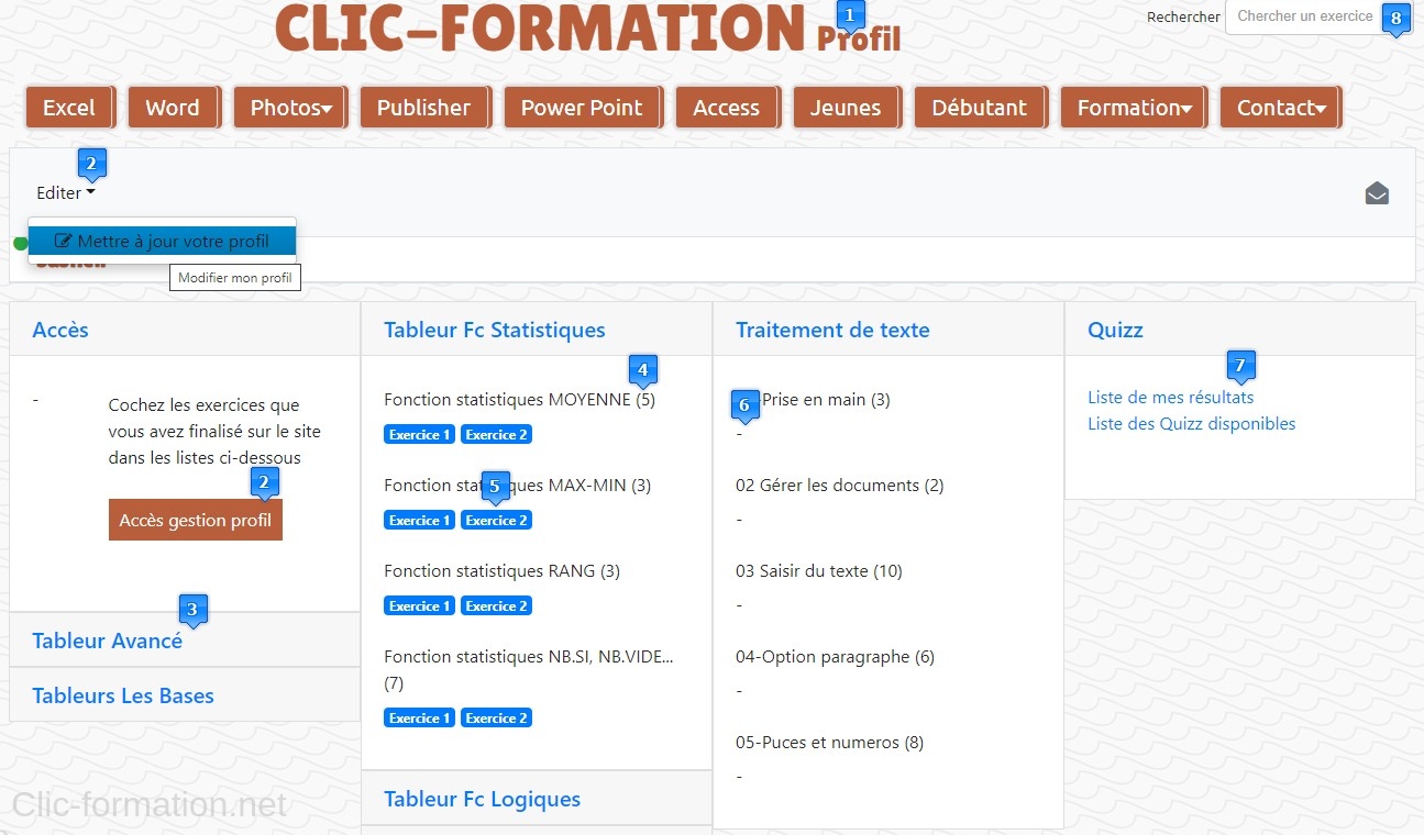 Ce chiffre vous indique le nombre de lien présent dans la compétence. En général le nombre d'exercices moins le support. Certaines pages sont "multi" exercices.