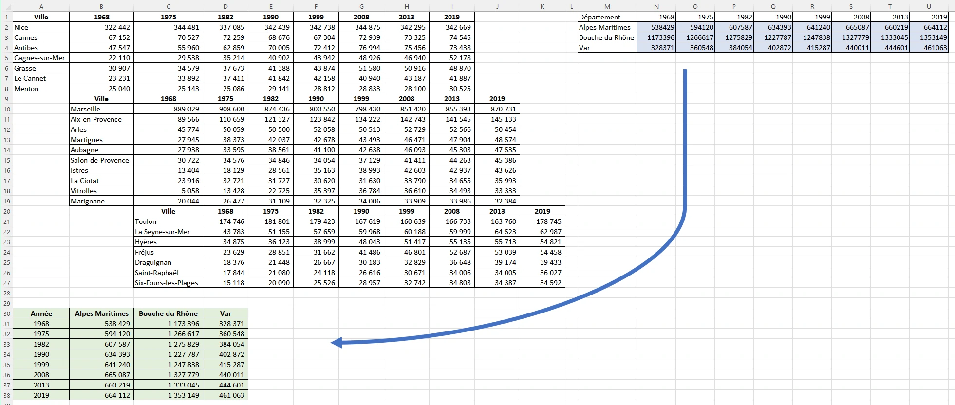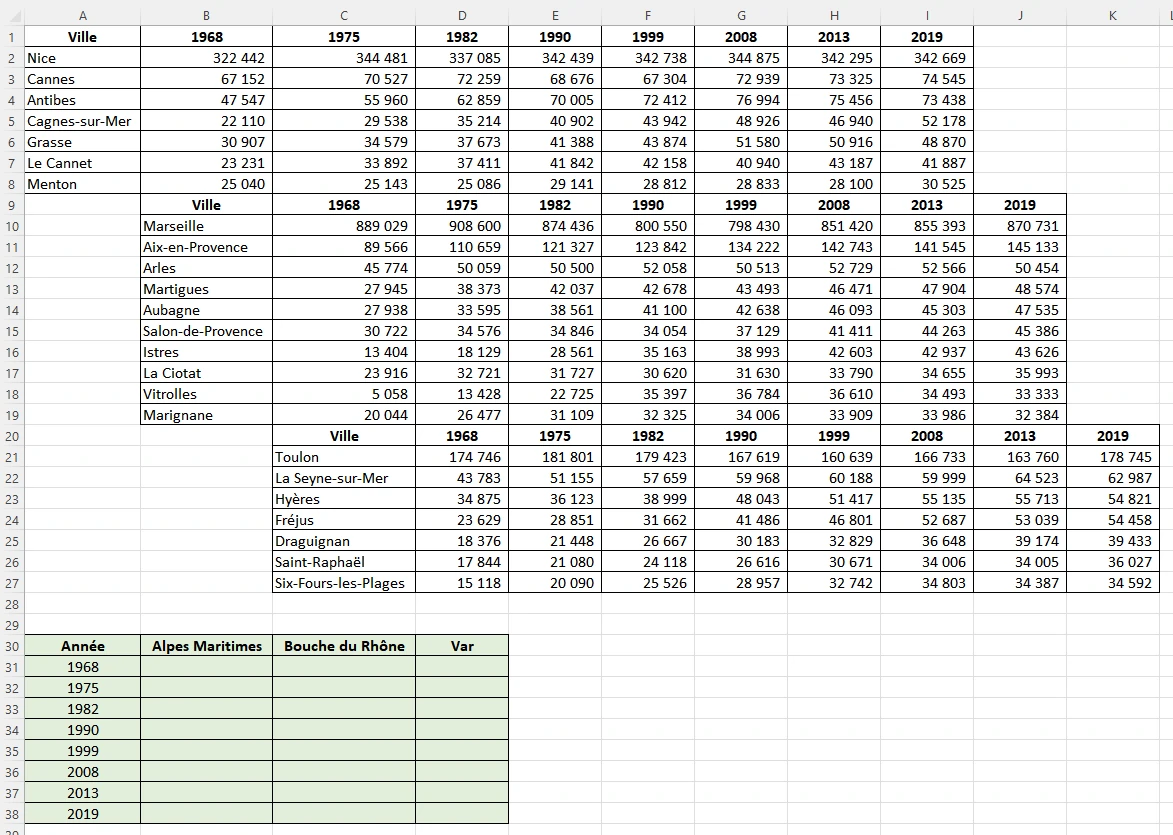 Solution 1 vous faites tout à la main, mais du fait du décalage du tableau et de l'orientation du tableau de réponse, ça va être long