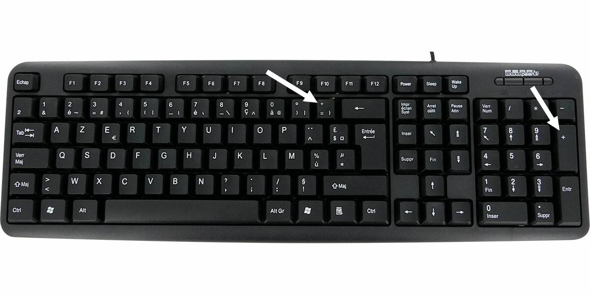 Cliquez ci-dessous pour voir l'emplacement de la touche "plus" sur un clavier standard