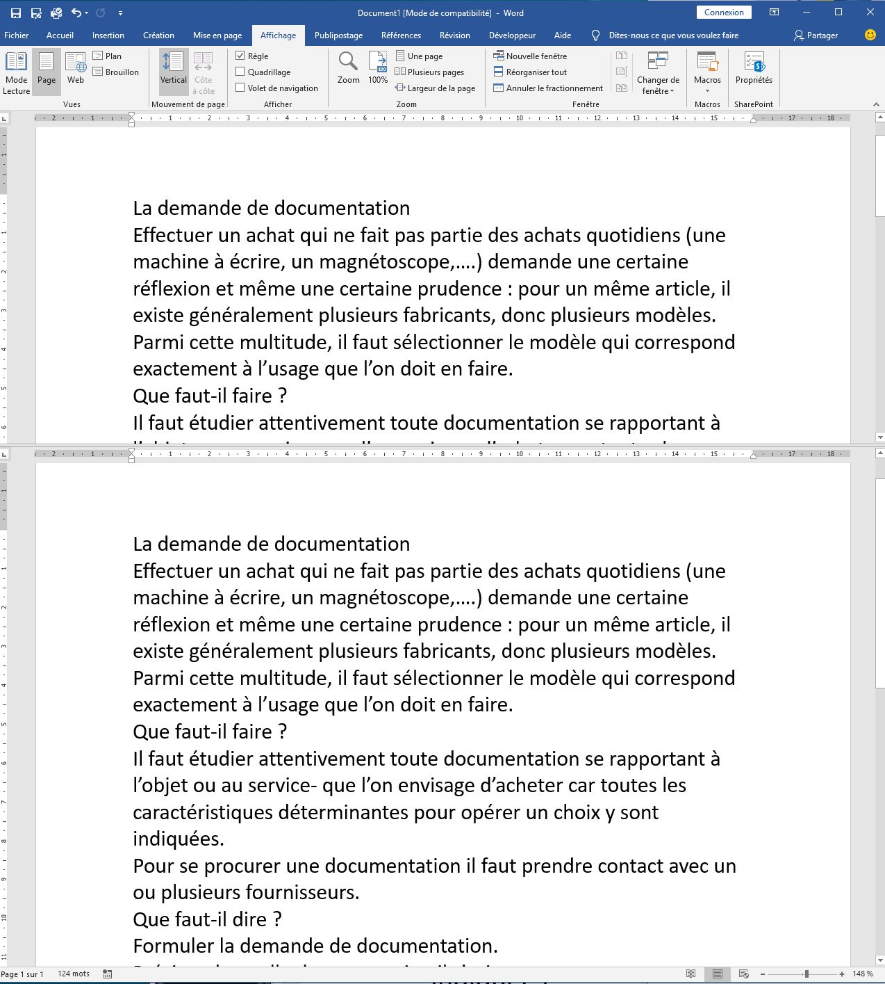 Dans le bloc AFFICHAGE, fractionner votre page pour obtenir le même document dans 2 affichages superposés