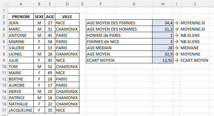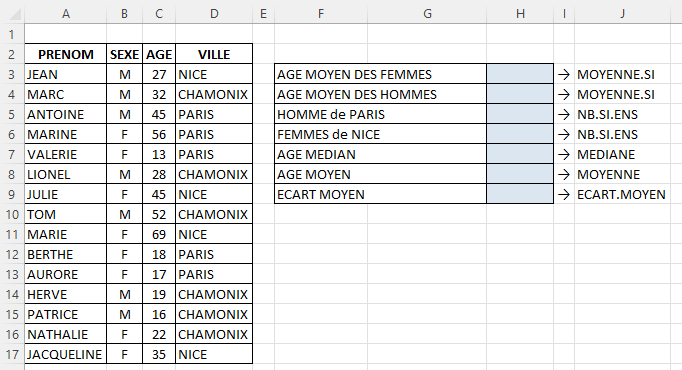 Vous devez remplir les cellules bleues avec les bonnes formules.Les formules à utiliser sont indiquées. Le tableau des références est toujours le même