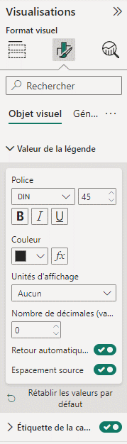 Si vous souhaitez afficher la valeur réelle il faut modifier la valeur de la légende et l'unité d'affichage à "aucun", ainsi la valeur réelle sera reprise dans la carte.
