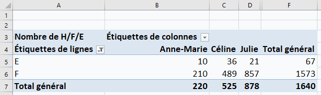 Tableau croisé dynamique : Quelle coiffeuse s'occupe davantage des femmes et des enfants ?