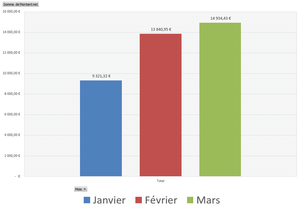 Tableau croisé dynamique : Quel est le mois (janvier, février ou mars) le plus rentable pour le salon de coiffure ?