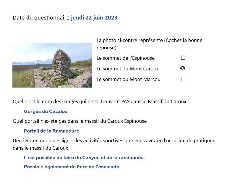 Vous réalisez le questionnaire suivant avec l'outil d'insertion des contrôles de l'onglet developpeur, vous utilisez les bons contôles: