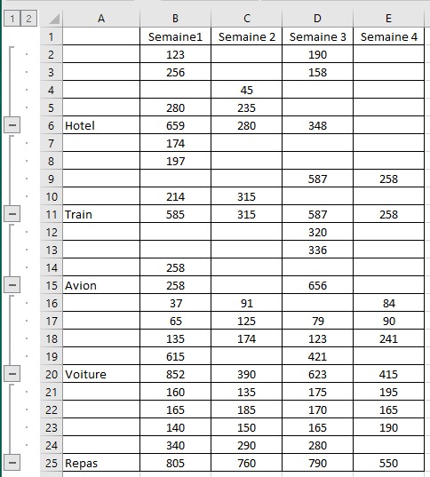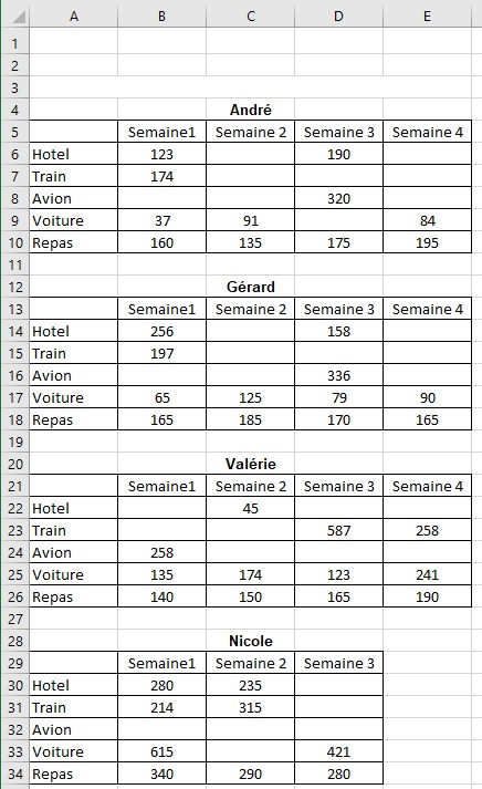 Même travail que sur les premiers exercices à la différence que les tableaux différents sensiblement. L'outil de consolidation d'Excel doit le prendre en compte et vous donner les bons résultats.