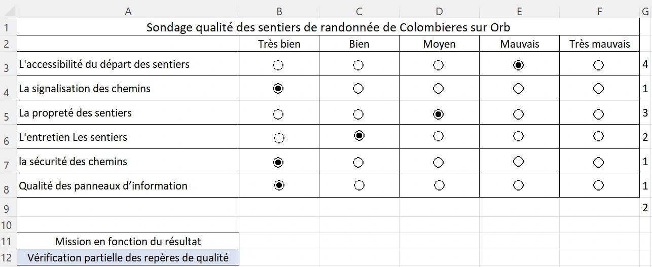 PS Ne pas hésiter à tester sur 2 lignes de 2 cases d'option