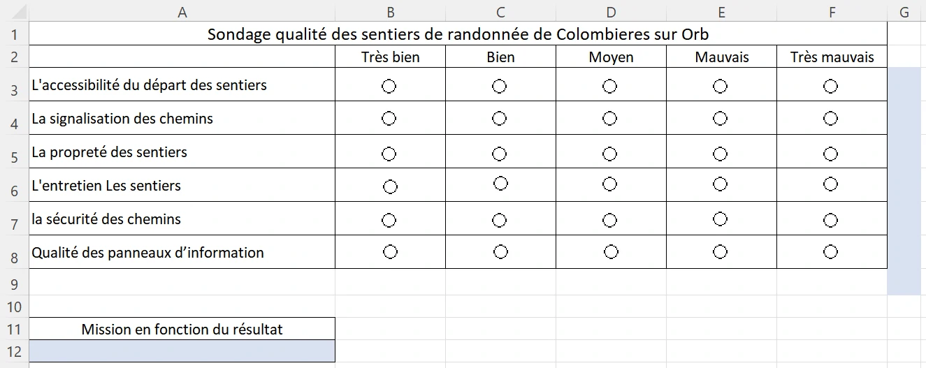 En A12, vous donnez des indications sur la mission à mettre en place à l'OT en fonction de la note moyenne (fonction SI imbriquée).