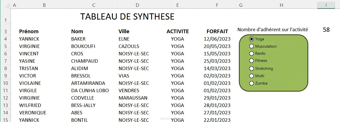 FILTRE(Tableau13;Tableau13[ACTIVITE]="YOGA");FILTRE...