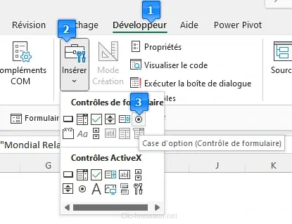 1. Activer l'onglet Développeur (si ce n'est pas déjà fait)support bouton radion 01