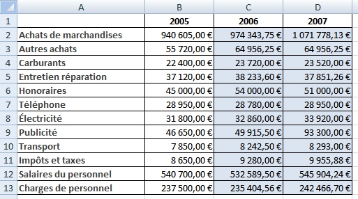 - Achats de marchandises : 1/10ᵉ de plus qu'en 2006
