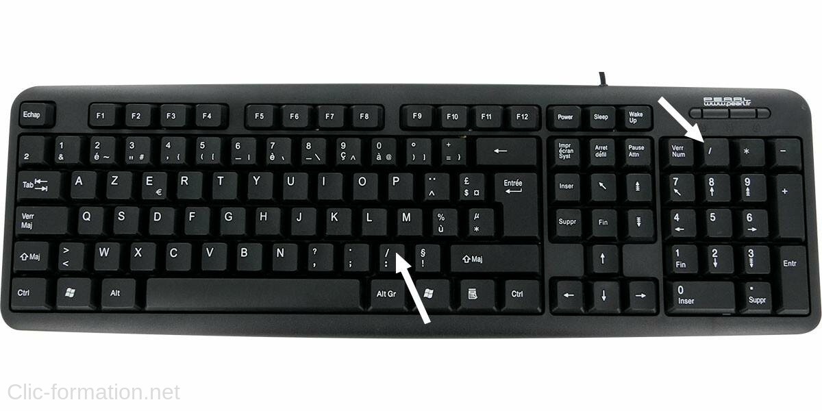Cliquez ci-dessous pour voir l'emplacement de la touche "diviser" ou slash sur un clavier standard