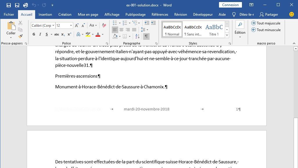 Dans le pied de page, vous insérez le modèle 3 colonnes puis la date du jour en partie centrale et le numéro de page à droite.