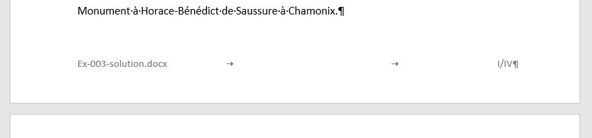 Dans le pied de page, vous insérez le nom du document et son format, sur la partie droite le nombre de pages sur le nombre total de pages.