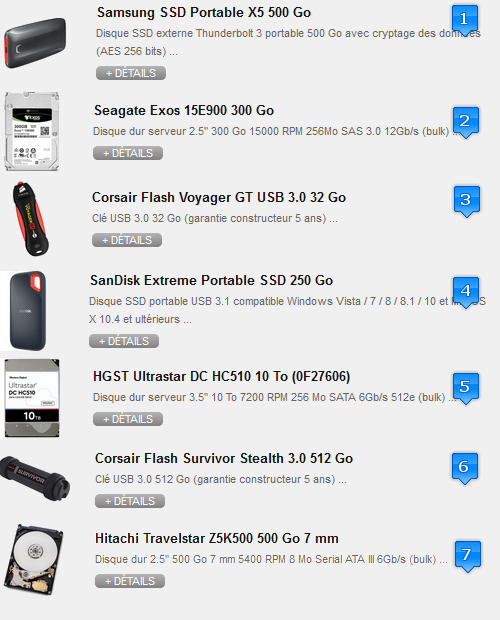 Classez ce matériel de la plus petite capacité à la plus grande capacité.
