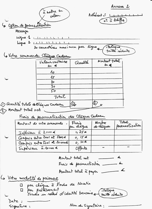 ✓ le bulletin de commande de chèques-cadeau. (format A4).