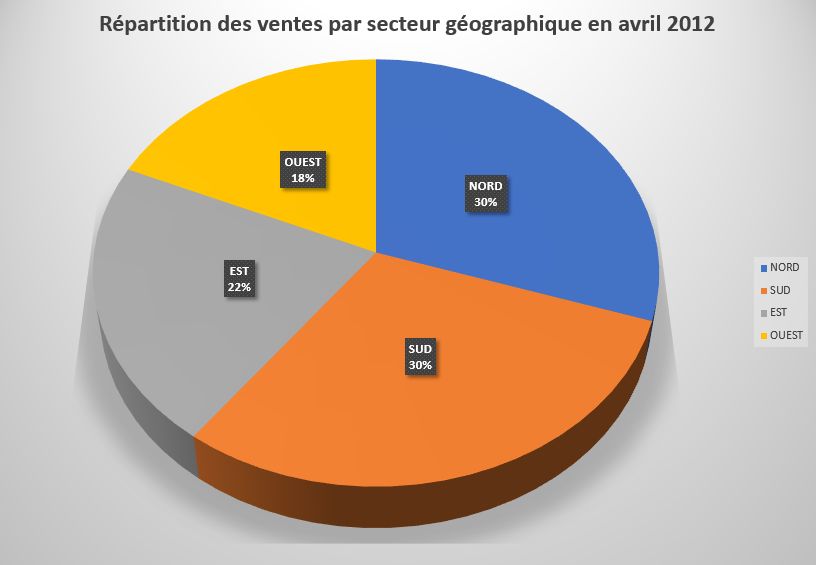 Titre (« Répartition des ventes par secteur géographique en avril 2012 ») ;