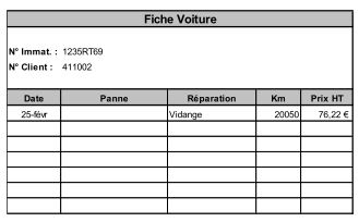 Actuellement, les informations réparation sont notées sur les fiches suivantes :