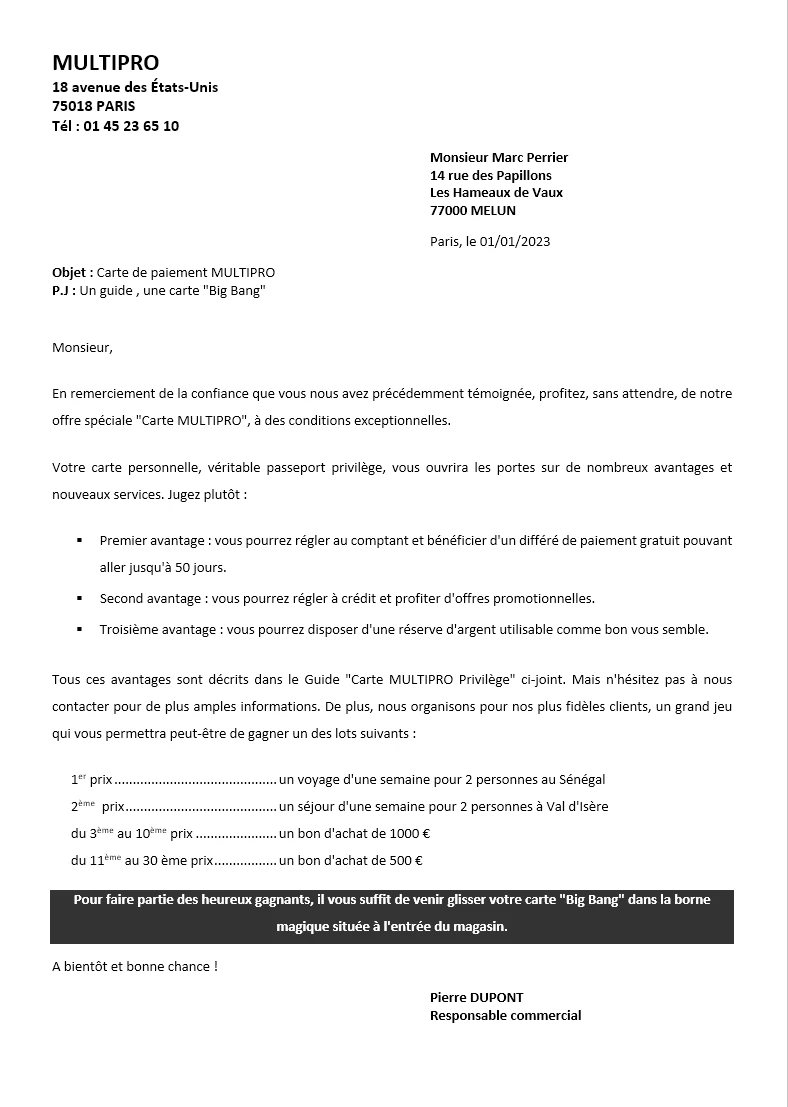 Appliquer un retrait gauche de 10 cm sur le destinataire, la date et la signature