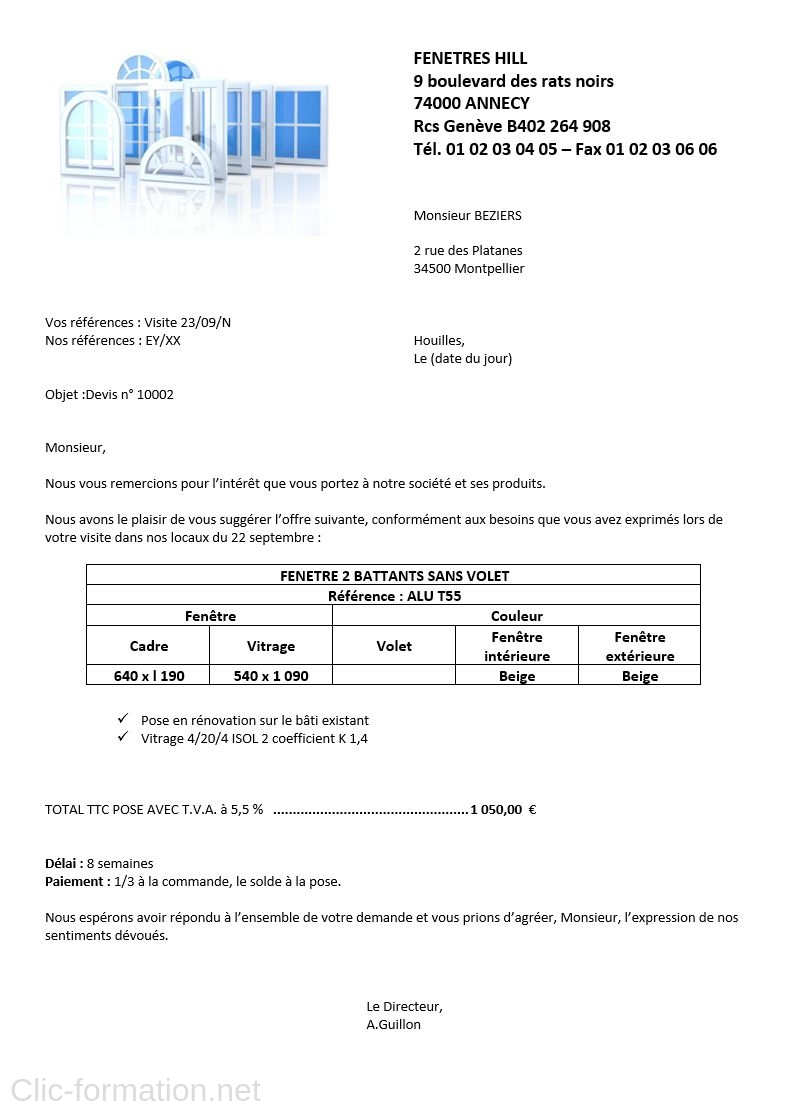 Exercice Word : Fenêtres HILL