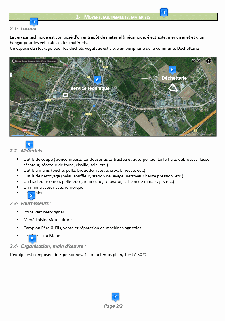 Zone 6 : Insertion de zone de texte et de zone à insérer SUR LA CARTE pour localiser les services techniques et la déchetterie.