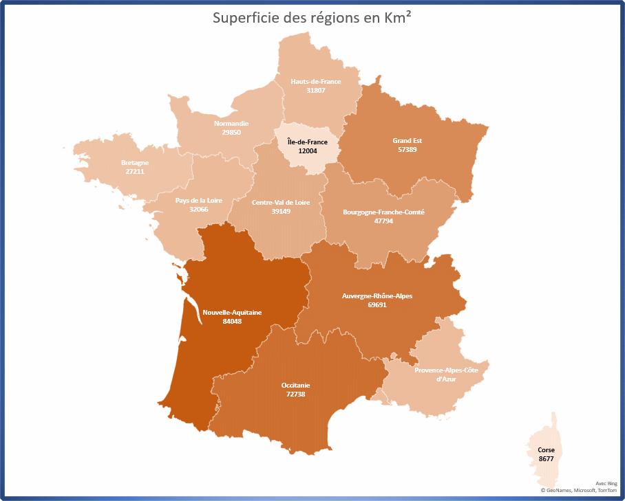 Dans la carte Vous affichez le nom de la région et la valeur en dessous, le jeu de couleur est au choix.