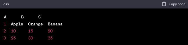 Par exemple, si vous avez les données suivantes dans les cellules A1 à C3 :