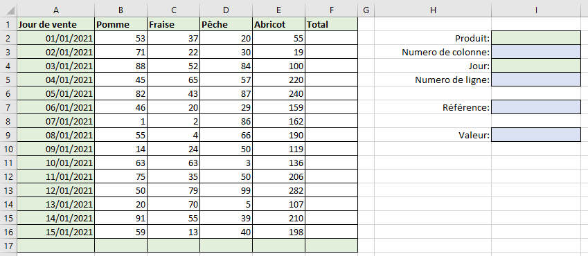 I7: Déterminer l'adresse de la cellule avec comme coordonnées I5 et I3 (la fonction ADRESSE sera nécessaire)